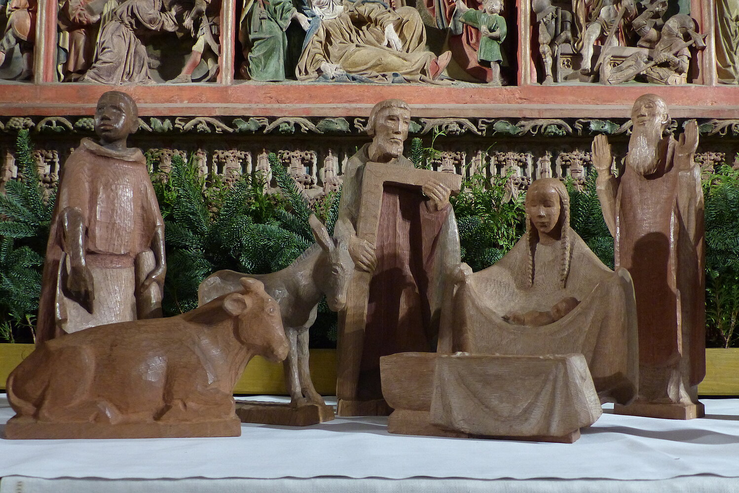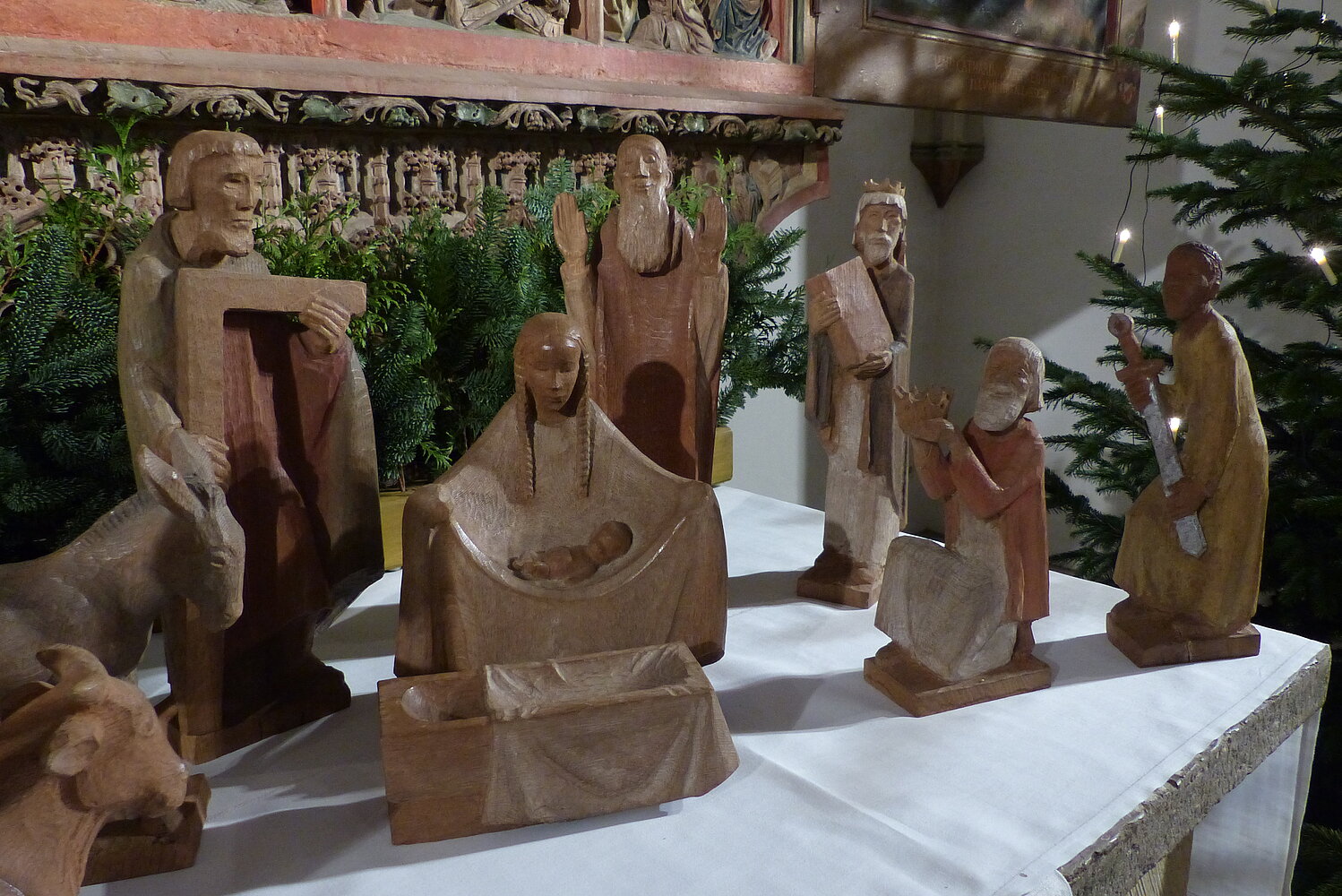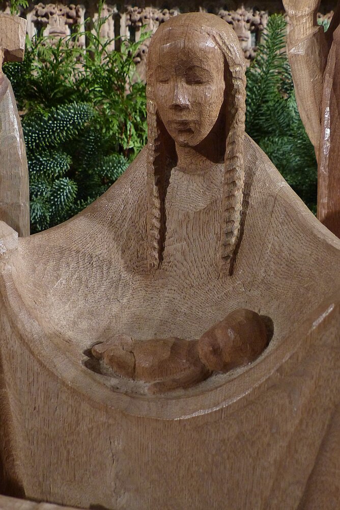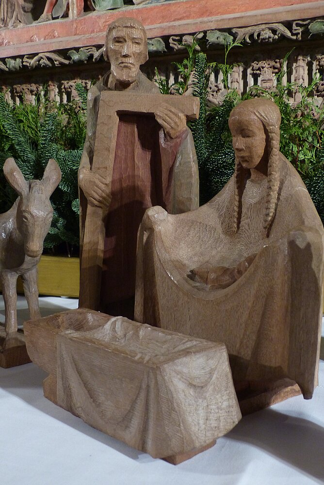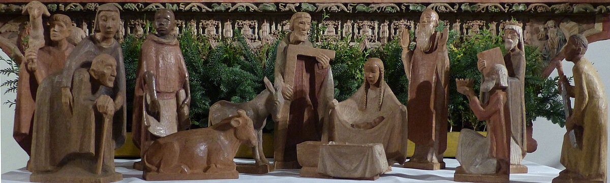 Die Krippe wurde vom Bildhauer Karl Hemmeter geschaffen, dessen bekanntestes Werk der Auferstehungschristus im neuen Teil der Gedächtniskirche in Berlin ist.