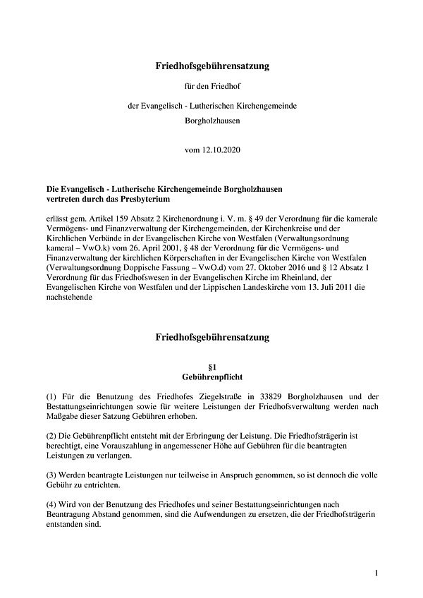 Friedhofsgebührensatzung zum Download